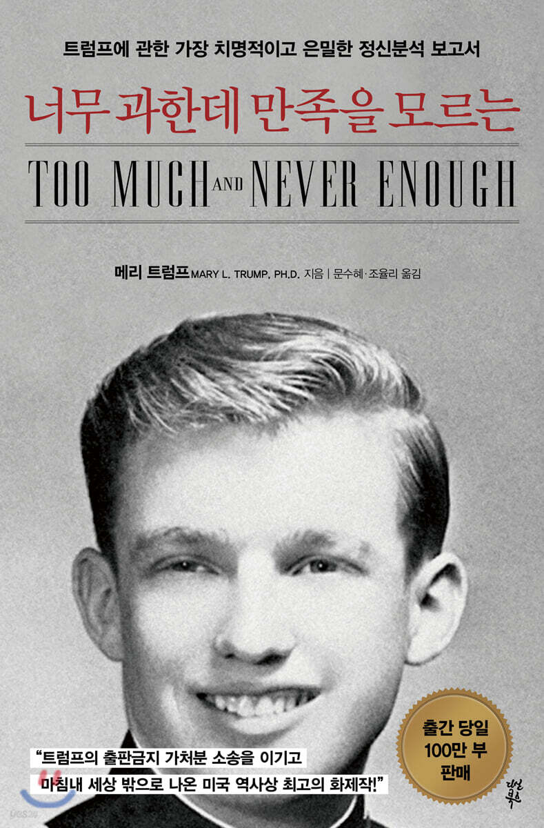 메리 트럼프(Mary L. Trump')의 책 『너무 과한데 만족을 모르는(Too Much and Never Enough)』은 도널드 트럼프 미국 대통령의 유일한 여조카로서, 그녀가 가문의 일원으로서 직접 경험한 트럼프 가족의 비극적이고 복잡한 역사를 한층 깊이 있게 탐구하는 작품입니다. 이 책은 트럼프 가문의 역사적 맥락과 그들이 어떻게 도널드를 만들어냈는지를 밝혀내며, 특히 도널드가 어떻게 현재의 자신이 되었는지를 심리학적 관점에서 설명합니다. 메리 트럼프는 임상심리학자로서 자신의 전문성을 바탕으로 가족의 이야기를 분석하며, 그녀의 개인적인 기억과 경험을 바탕으로 삼촌 도널드 트럼프의 복잡한 인격을 해부합니다.