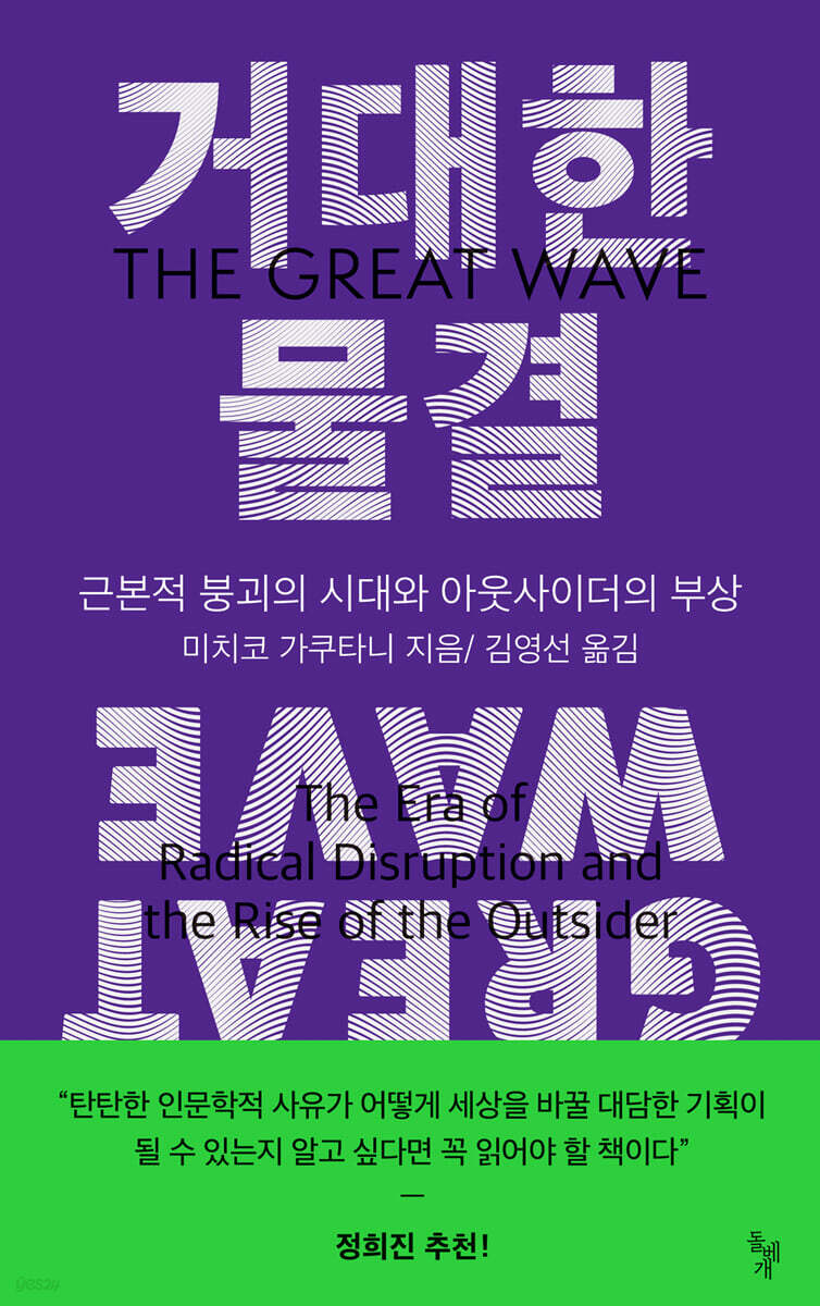미치코 가쿠타니(Michiko Kakutani)의 『거대한 물결(The Great Wave: The Era of Radical Disruption and the Rise of the Outsider)』은 변화의 소용돌이에 휩싸인 현대 사회를 통찰력 있게 분석한 교양서적이다. 이 책은 정치, 기술, 문화, 경제의 상호작용을 탐구하며, 현재 우리가 직면한 급격한 변화의 시대를 이해하는 데 도움을 준다. 가쿠타니는 우리 시대의 불확실성과 불안정성을 ‘거대한 물결’에 비유하며, 이러한 시기를 통해 사회가 어떻게 변모하고 있는지를 깊이 탐구한다.